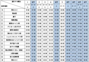 乗車状況から、入曽方面を(金)のみに、狭山市駅・新狭山駅方面を(月・火・水・木・土)とさせていただきます。また、クラブ近隣の新規商業施設による混雑のため時間通りの運行が難しくなったため、進行方向を「逆回り」にさせていただきます。バス停が道路の逆になり、また時間も変更となりますので、バス時刻表のご確認をお願いいたします。